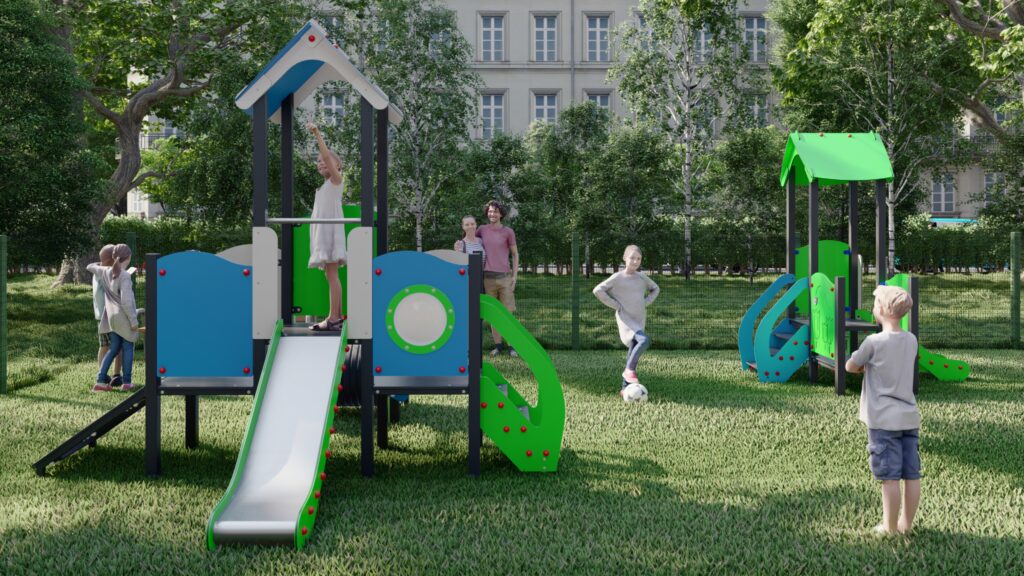 UWAGA! Cena nie zawiera ogrodzenia, stworzenia nawierzchni pod plac zabaw oraz elementów małej architektury (np. śmietnik). Transport i montaż są również dodatkowo kalkulowane w zależności od preferencji klienta.