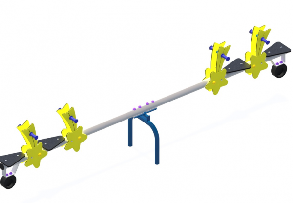 Huśtawka ważka poczwórna to propozycja łącząca klasyczny styl z nowoczesną formą. Mogą korzystać z niej dzieci w różnym wieku. Zabawa na niej może być sposobem na integrację, ponieważ huśtawka posiada aż 4 siedziska. Urządzenie dzięki swoim kompaktowym rozmiarom i nowatorskiej formie wspaniale wpasuje się w każdy plac zabaw. Dobrze będzie się prezentować również jako niezależny element usytuowany na przykład w ogrodzie albo parku.