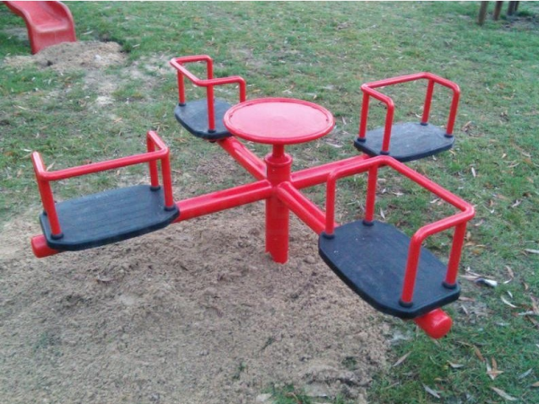 KARUZELA KRZYŻOWA – to idealna propozycja dla dzieci lubiących kręcić się na siedząco. Wyprofilowane metalowe oparcia oraz aluminiowe siedziska pokryte gumą zapewniają bezpieczeństwo podczas zabawy.