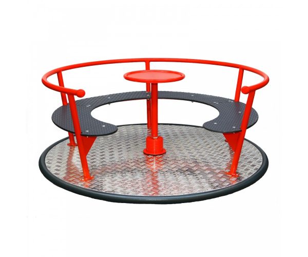 Karuzela to jedna z ulubionych rozrywek wszystkich dzieci na placach zabaw. Karuzela tarczowa z siedziskami z płyty HDPE (otwarta), dostosowana do dzieci w wieku od 3 do 15 lat, do której każdy bez problemu wejdzie. Została wykonana z najwyższej jakości materiałów i spełnia niezbędne standardy. Jest również łatwa w montażu, choć trzeba pamiętać o konieczności zabetonowania kotwy. Karuzela posiada centralnie umieszczony uchwyt, dzięki czemu możemy wprowadzić ją w ruch.