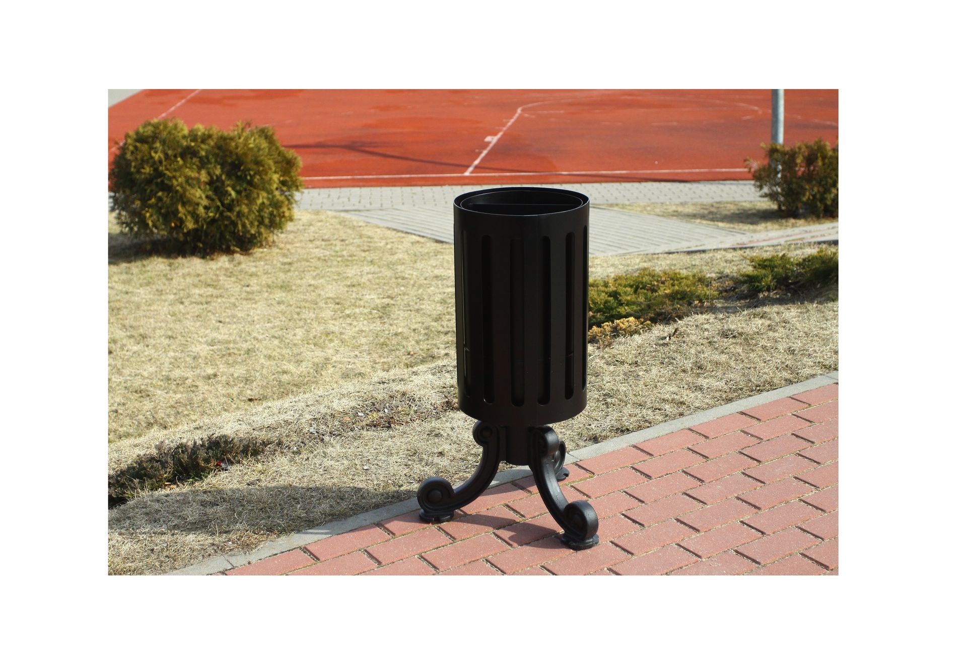 - Podstawę kosza stanowią trzy odlewy żeliwne- każdy odlew przymocowany jest do rury grubościennej.