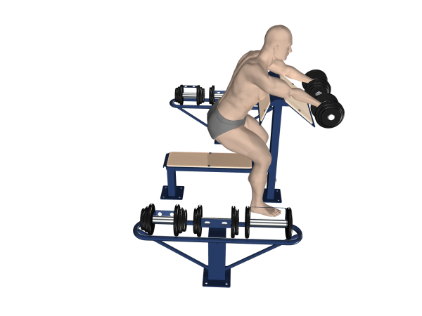 Sprzęt МВ 7.33 składa się z: ławki prostej z modlitewnikiem, trzech par hantli oraz dwóch stojaków do ich przechowywania. Daje możliwość wykonywania różnych ćwiczeń z wolnym ciężarem. Szczególnie polecany do trenowania bicepsów, tricepsów, mięśni naramiennych oraz wszystkich mięśni klatki piersiowej.