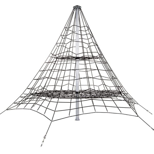 Piramida linowa ma wysokość 5m, dzięki czemu gwarantuje długie godziny świetnej wspinaczki. Wykonana z solidnej liny zbrojonej o średnicy 18 mm z aluminiowymi łącznikami. Na zamówienie dostępna także z plastikowymi łącznikami w różnych kolorach.