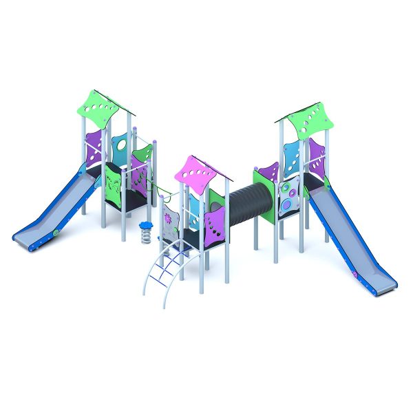 Zestaw zabawowy Alex to forma klasycznej zjeżdżalni połączona z niezwykle ciekawymi dodatkami. Wyróżniają go pastelowe kolory, nieszablonowa bryła oraz kompaktowe rozmiary, które pozwalają na ulokowanie zestawu w miejskim skwerku, terenie przyszkolnym czy przy restauracji. Zestaw może pełnić funkcję samodzielnego produktu oraz być uzupełnieniem obecnego placu zabaw.