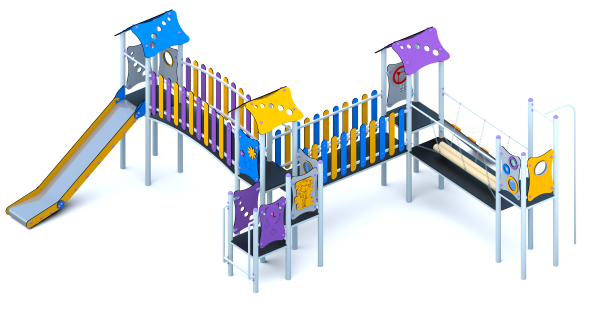 Zestaw Sarabi to niezwykle atrakcyjne urządzenie na plac zabaw dla dzieci z każdej grupy wiekowej. Łączy w sobie zjeżdżalnię, różnorodne panele oraz pomosty. W połączeniu z efektowną kolorystyką i różnorodnością elementów urządzenie jest bardzo popularnym i pożądanym rozwiązaniem w zakresie realizacji placów zabaw. Zestaw doskonale sprawdzi się, jako urozmaicenie terenu miejskiego skwerku czy przedszkola.