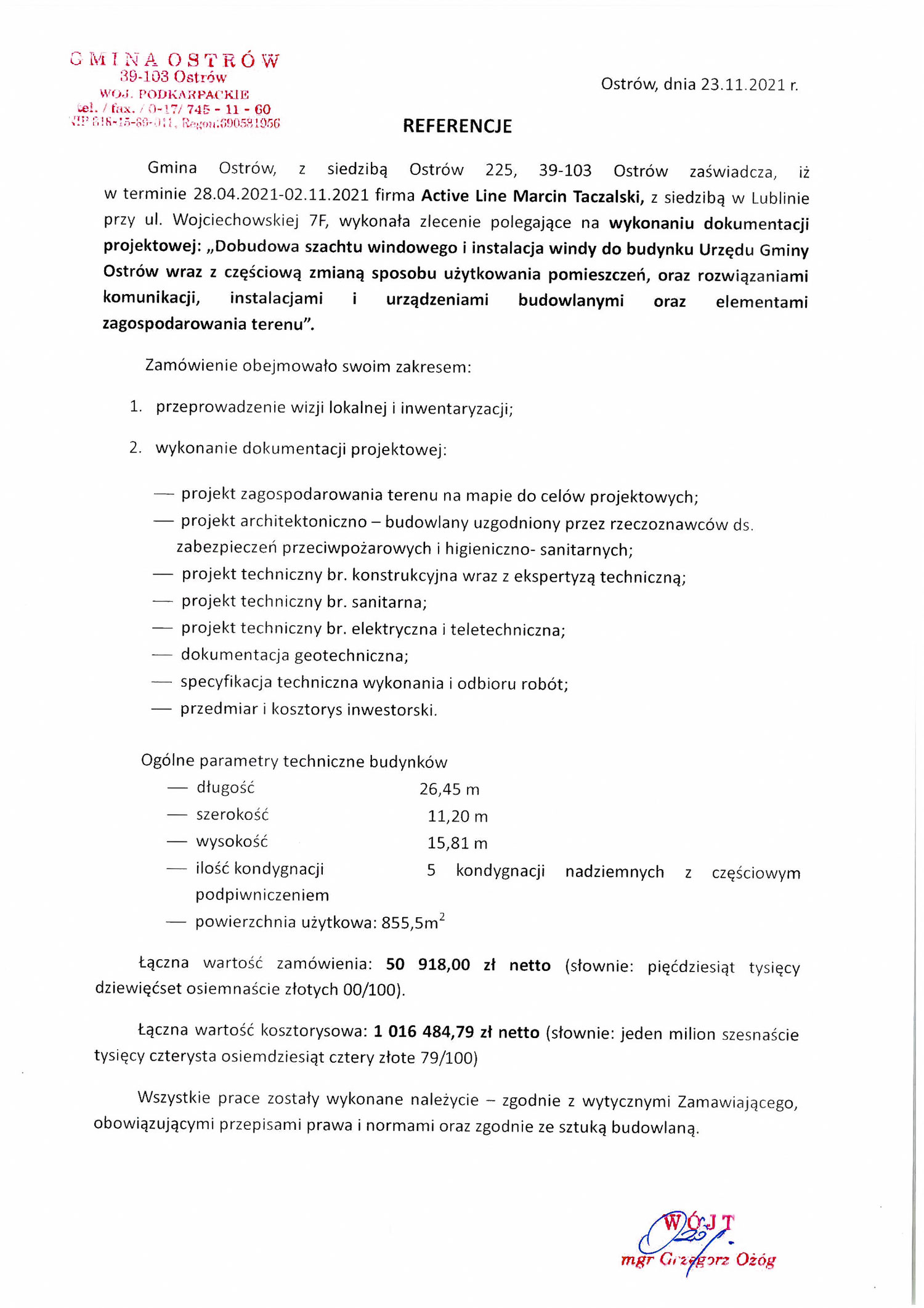 Dobudowa windy zewnętrznej do budynku Urzędu Gminy w Ostrowie
