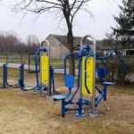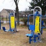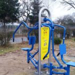 Urządzenia outdoor fitness w kolorze niebieskim dobrze współgrają z okolicą, wyglądają nowocześnie i profesjonalnie. Czekamy, aż teren się zazieleni i zobaczymy efekt końcowy.