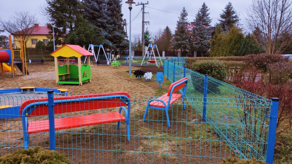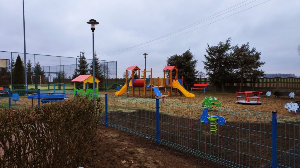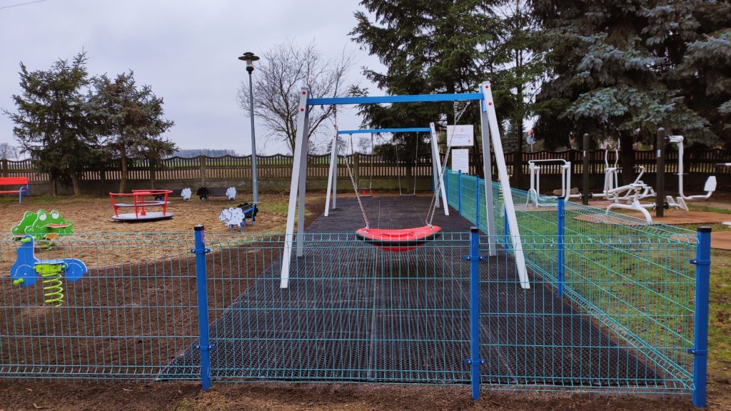 Najmłodsi mają do dyspozycji ciekawie wyposażony drewniany zestaw zabawowy, huśtawki, karuzele oraz urocze ławki parkowe do odpoczynku po intensywnej zabawie! Opiekunowie również mogą być spokojni – jak zawsze, zadbaliśmy o spełnienie wszystkich norm bezpieczeństwa tak, aby ich pociechy mogły szaleć do woli! 🙂