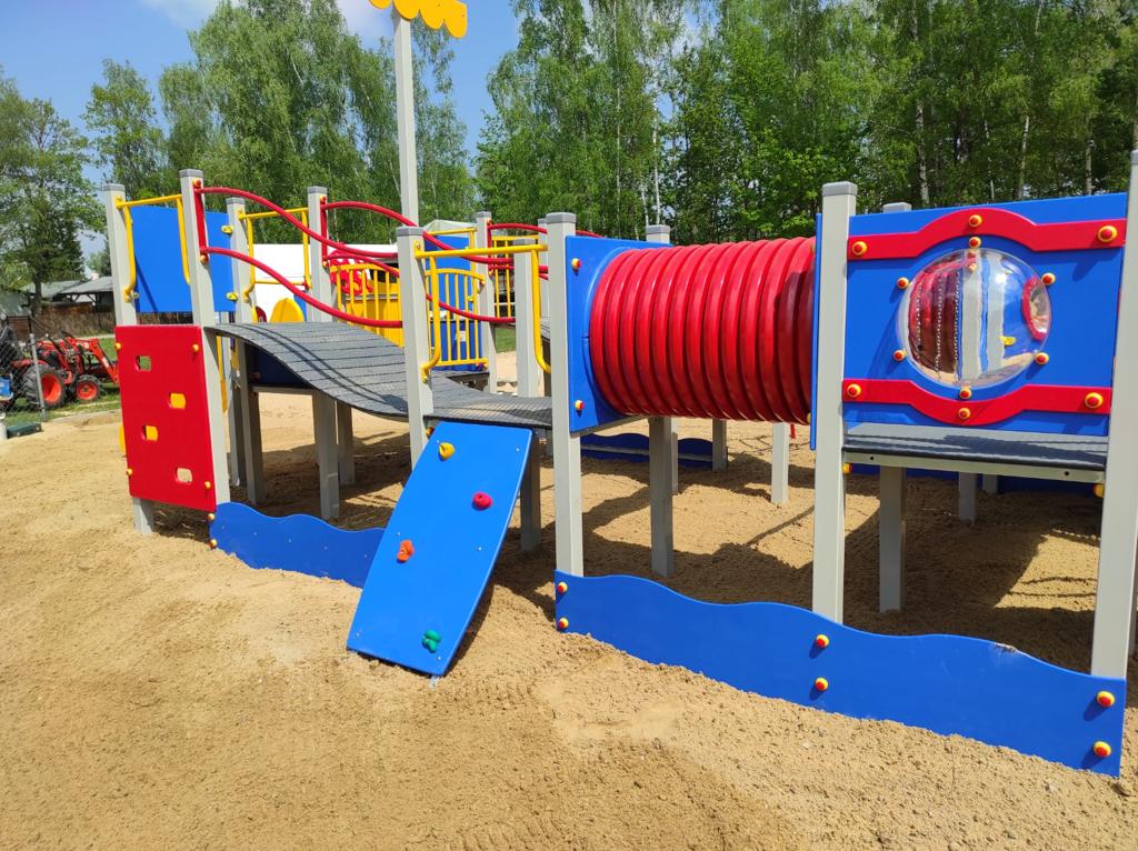 Dla najmłodszych wielbicieli dobrej zabawy tym razem wykonaliśmy ciekawie wyposażony plac zabaw. Tym razem wykorzystaliśmy zestaw, który wyposażony jest w wieżę czterokątną bez dachu, zjeżdżalnię, liczne pomosty, a wśród nich: wiszący, kładka, tunel, łukowy, dwa rodzaje podejść – linowe oraz ścianka wspinaczkowa pionowa oraz maszty i element dekoracyjny.