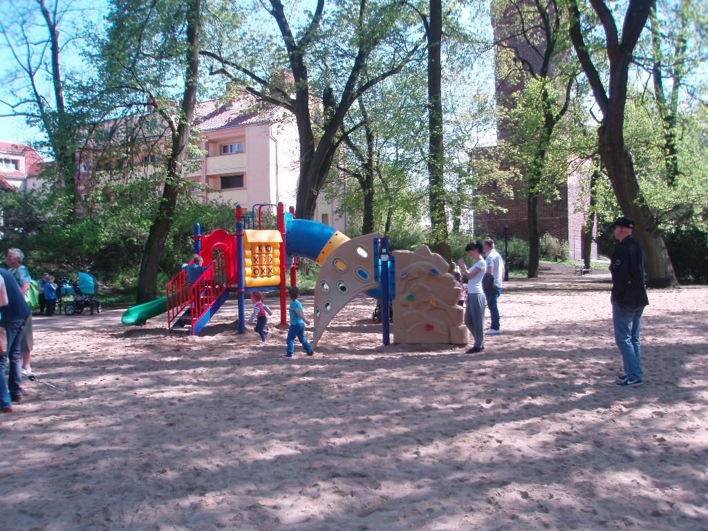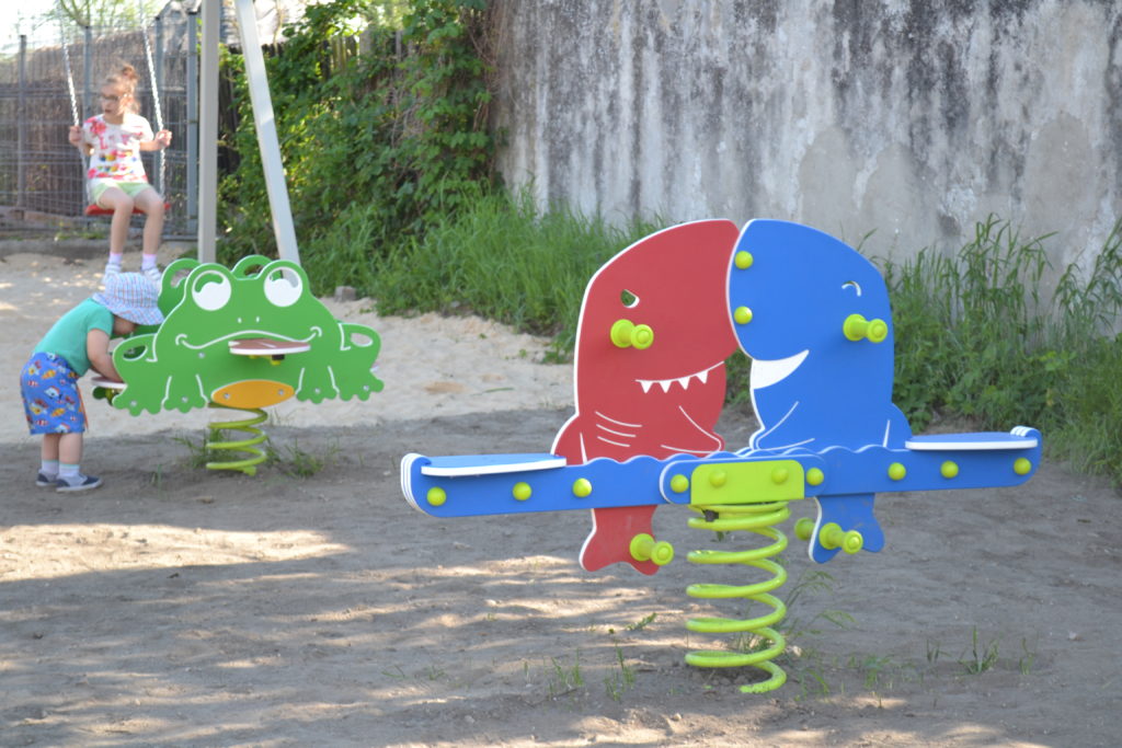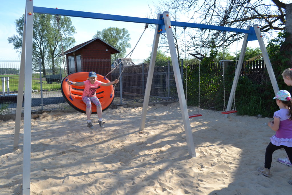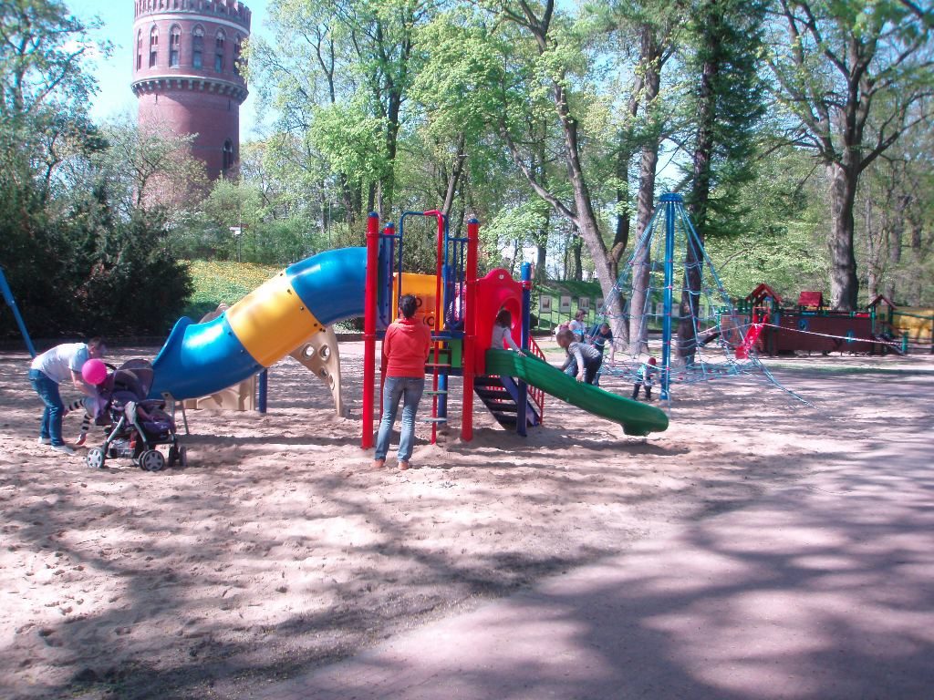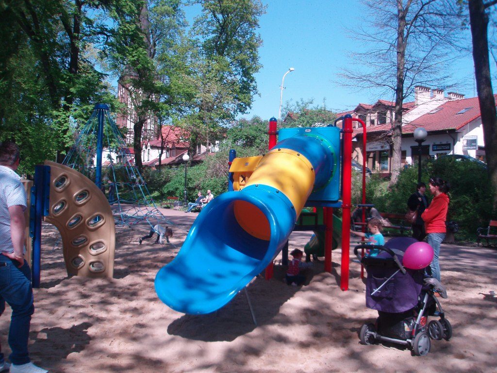 Plac zabaw jest teraz główna atrakcją parku. Okazuje się, że dzieci namawiają rodziców na wycieczki do niego i nie chcą wychodzić. Chętnie spędzają czas na kolorowych zestawach zabawowych. Jeden z nich jest wyposażony w zjeżdżalnię tubową, która robi furorę. Dotąd takie atrakcje były dostępne tylko dla starszych dzieci w parkach rozrywki. Teraz każde może doświadczać wspaniałych emocji nie jadąc daleko, a tylko wybierając się do parku. Najmłodsi z zaangażowaniem uczą się też zasad gry “kółko i krzyżyk” na dużym, kolorowym panelu przeznaczonym specjalnie dla nich.