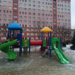 Największym urządzeniem na placu zabaw jest zestaw zabawowy z licznymi elementami ozdobnymi. Ma trzy różne zjeżdżalnie, przejścia tubowe i wieże z daszkami. Na osiedlu brakowało miejsca tylko dla dzieci, w którym można spokojnie spędzić czas na świeżym powietrzu.