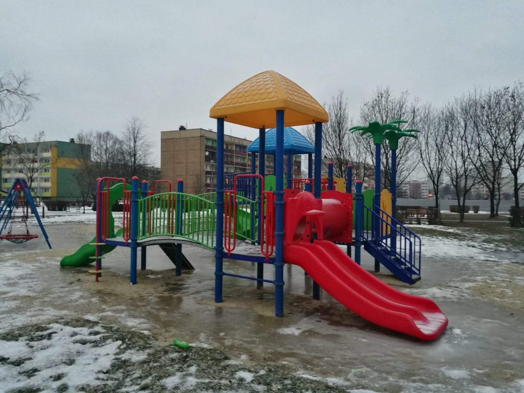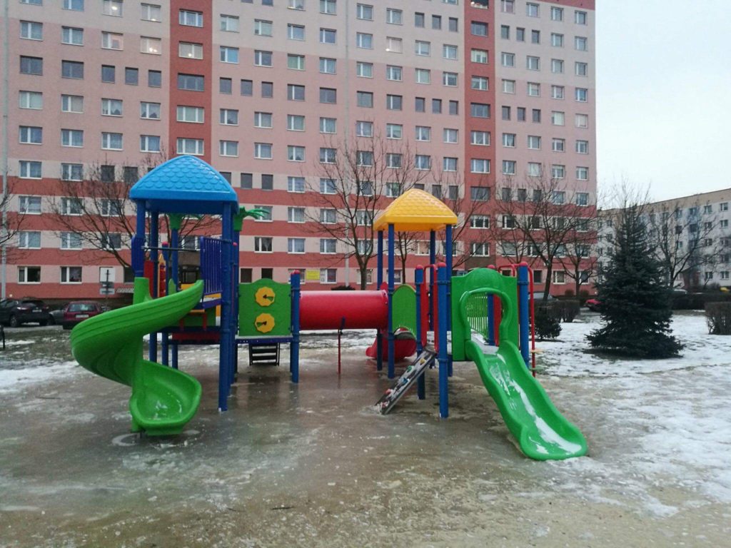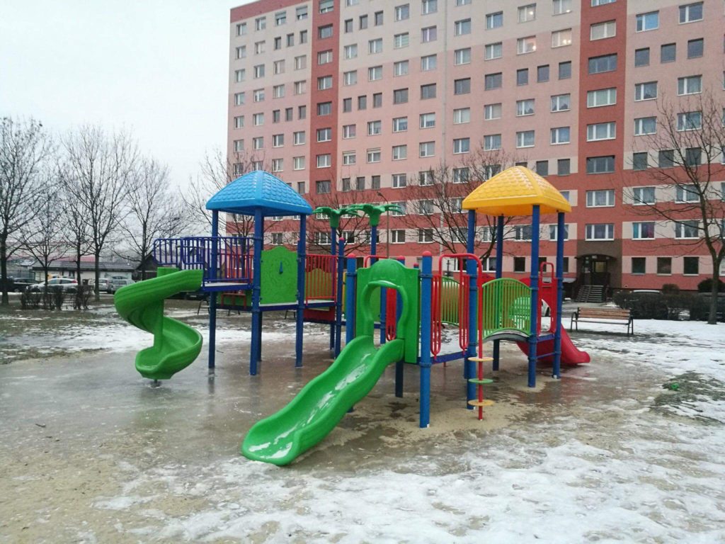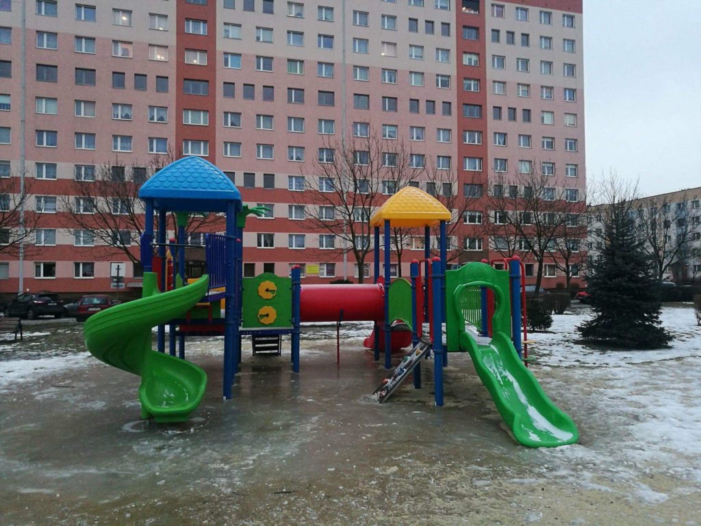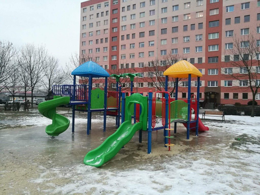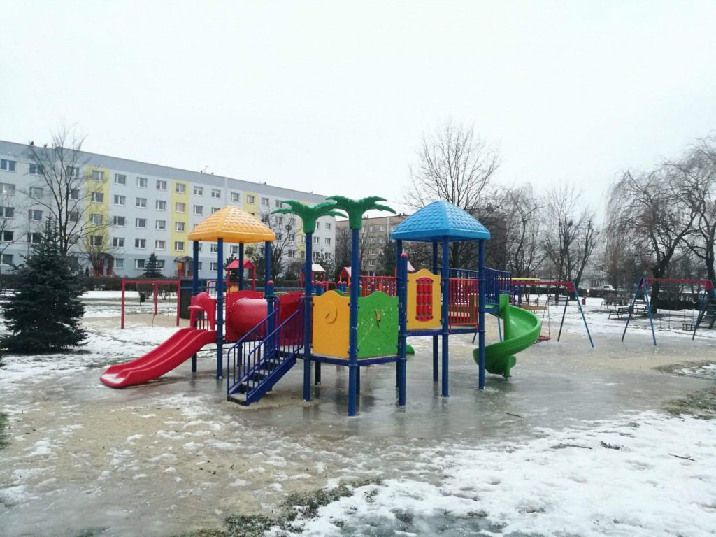 Największym urządzeniem na placu zabaw jest zestaw zabawowy z licznymi elementami ozdobnymi. Ma trzy różne zjeżdżalnie, przejścia tubowe i wieże z daszkami. Na osiedlu brakowało miejsca tylko dla dzieci, w którym można spokojnie spędzić czas na świeżym powietrzu.