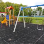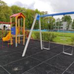 W ramach realizacji tego zadania przygotowaliśmy plac zabaw wyposażony w podwójną huśtawkę oraz zestaw, na który składa się wieża czterokątna z dachem dwuspadowym, zjeżdżalnia, podejście szkielet dinozaura, podejście stopień pojedynczy, lina do wspinania, drabinka linowa oraz ścianka wspinaczkowa.