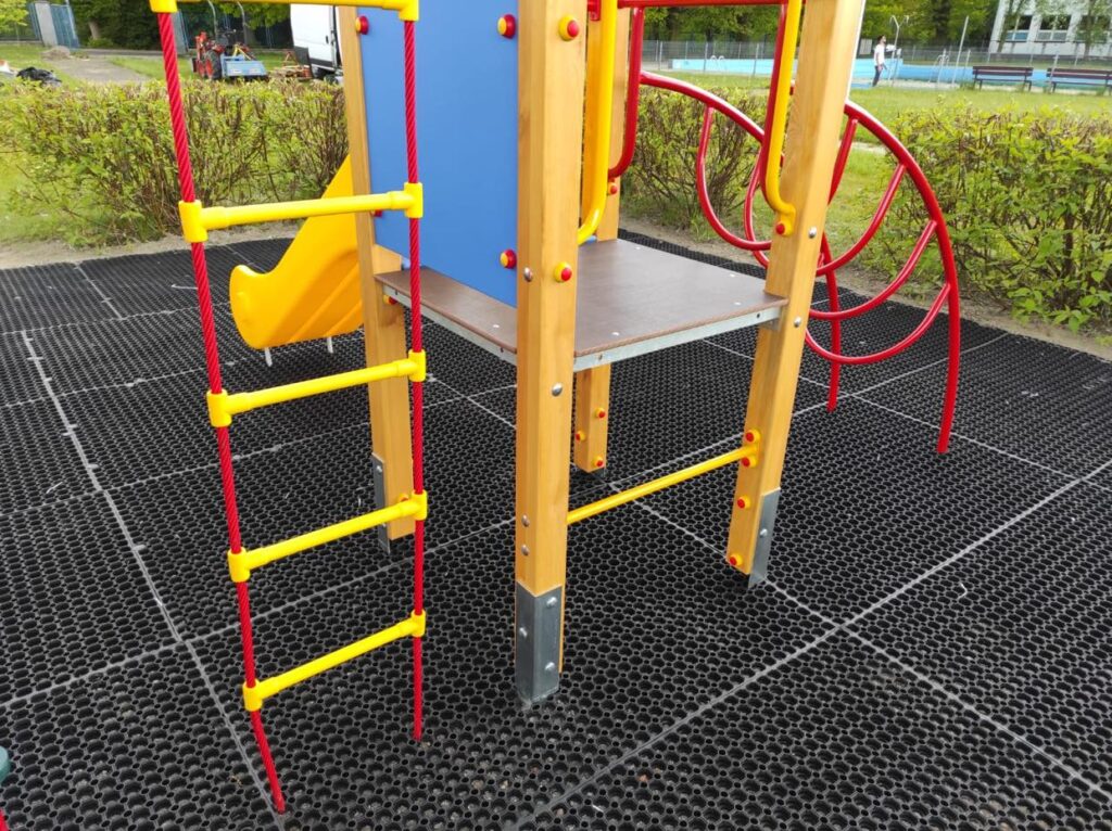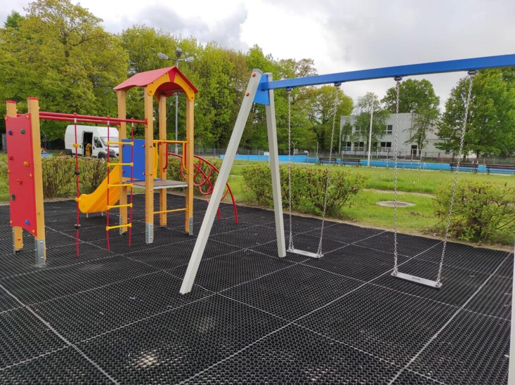 W ramach realizacji tego zadania przygotowaliśmy plac zabaw wyposażony w podwójną huśtawkę oraz zestaw, na który składa się wieża czterokątna z dachem dwuspadowym, zjeżdżalnia, podejście szkielet dinozaura, podejście stopień pojedynczy, lina do wspinania, drabinka linowa oraz ścianka wspinaczkowa.