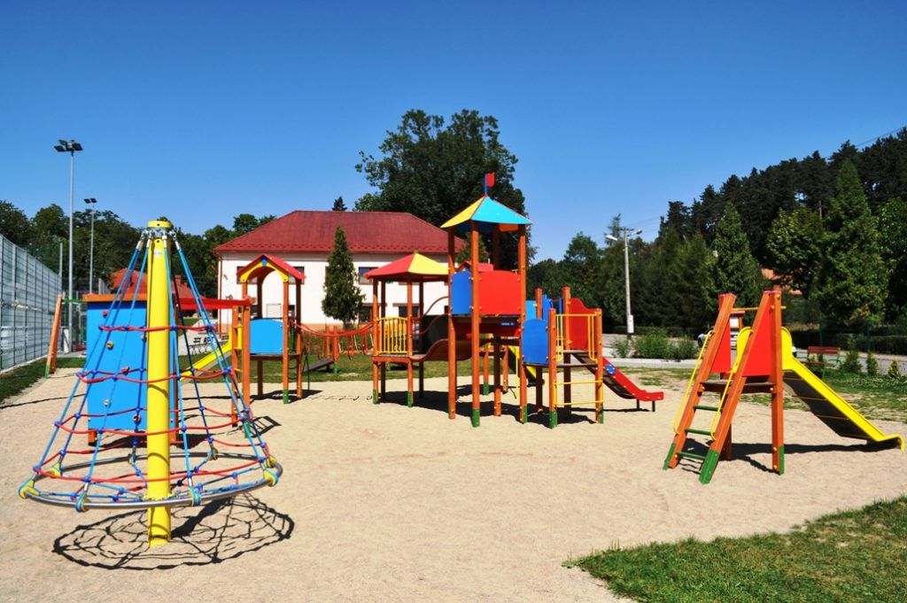 Składa się on głównie z drewnianych urządzeń, jak zestaw w kształcie zamku, zjeżdżalnie i huśtawki wagowe. Ciekawym elementem jest drewniany zestaw sprawnościowy z drabinkami, linami i poprzeczkami. Do dyspozycji dzieci jest też linarium, karuzela tarczowa i ścianka wspinaczkowa. Najmłodsi w tym miejscu mogą rozwijać swoje umiejętności fizyczne i społeczne oraz świetnie się bawić w bezpiecznym otoczeniu. Wszystkie elementy placu zabaw są certyfikowane i atestowane.