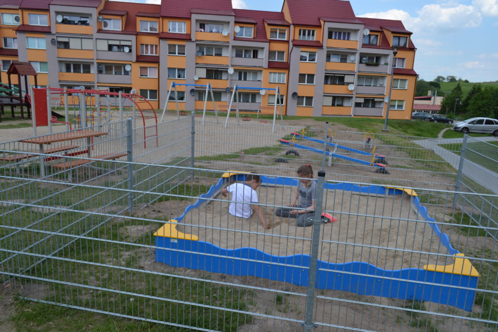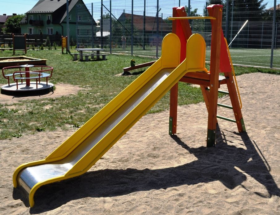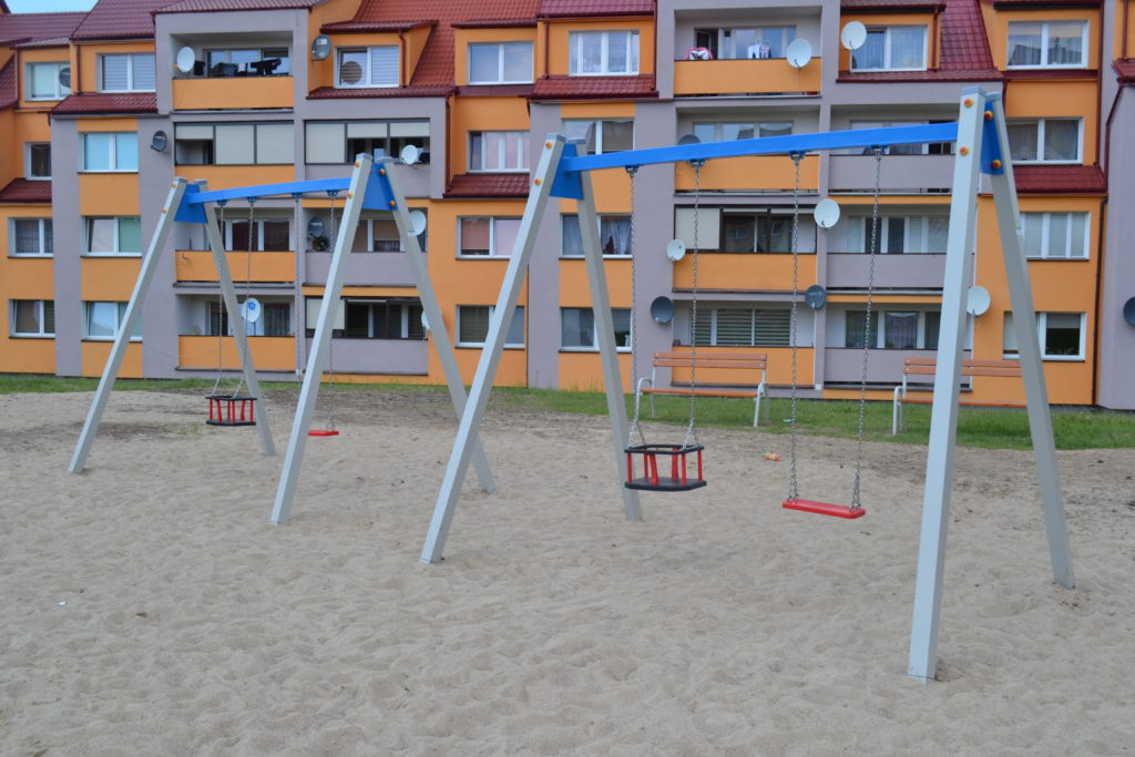 Nowy plac zabaw to zawsze duże emocje. Nasze, bo cieszymy się z sukcesu i dzieci, bo dostają one nowe miejsce do spędzania czasu na świeżym powietrzu. Najnowsza realizacja składa się z metalowych elementów zabawowych. Jest wyposażona w huśtawki, zamki, huśtawki wagowe i zestawy sprawnościowe. Te ostatnie mają siatki do wspinania i drabinki, na których dzieci będą mogły rozwijać swoją zwinność i spryt. Strefa z piaskownicą została oddzielona ogrodzeniem żeby uniemożliwić zwierzętom dostęp do piasku.