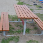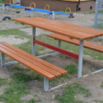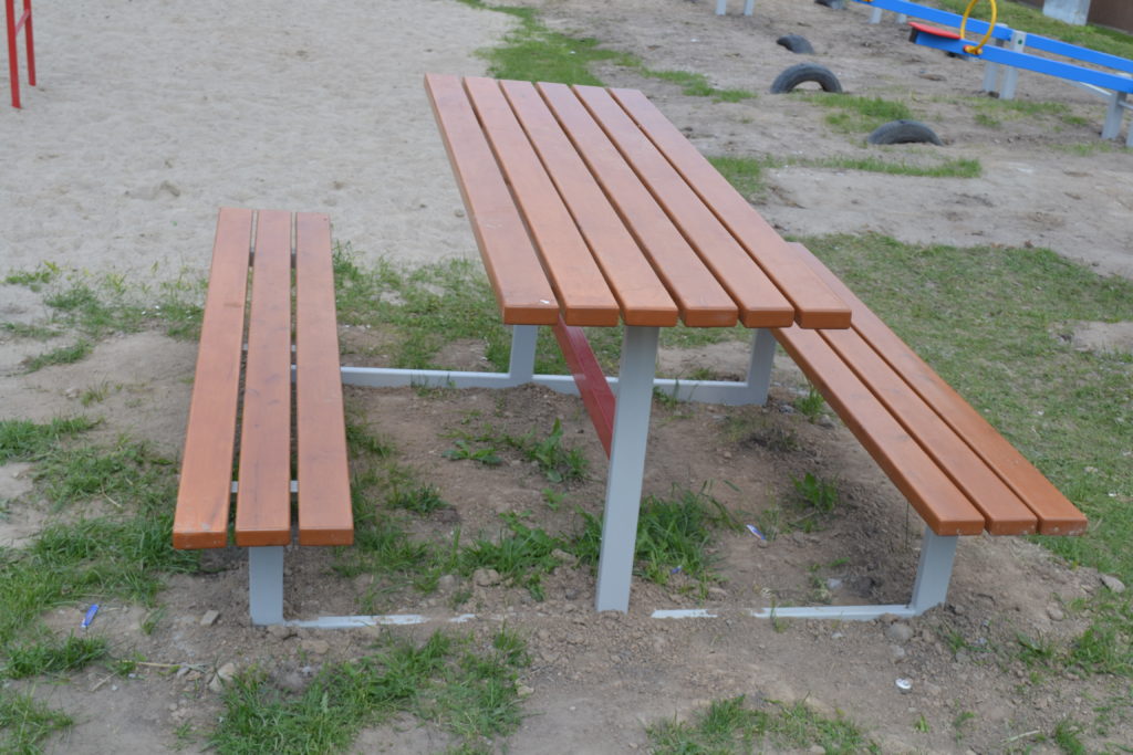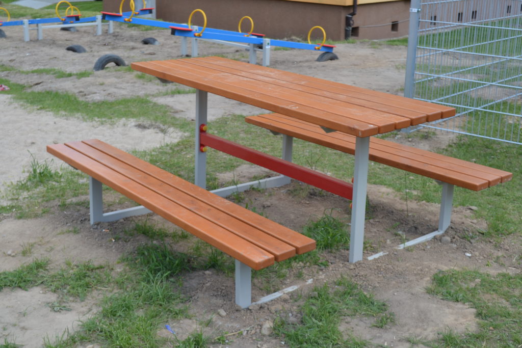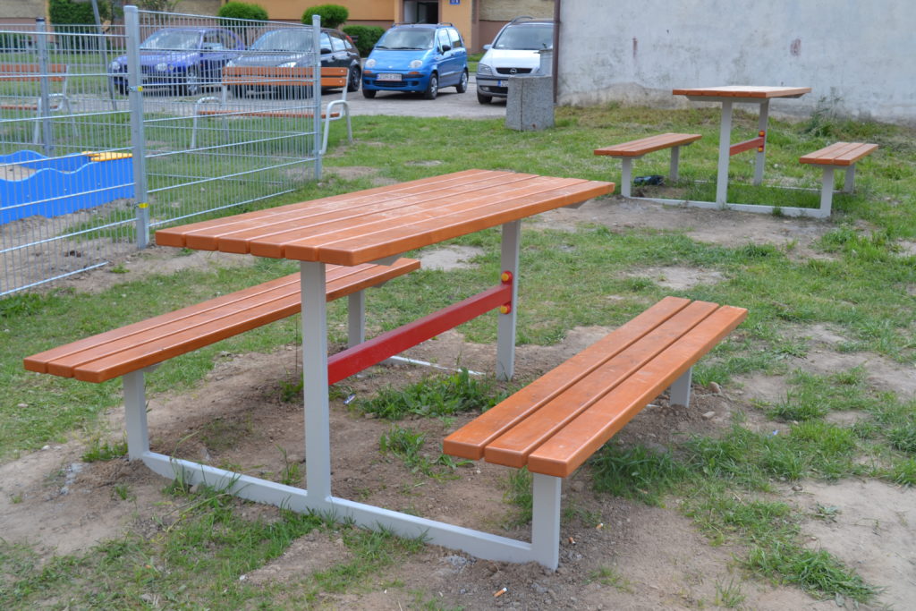 Stworzyliśmy też miejsce do odpoczynku. Stoliki z ławkami to idealne miejsce na zjedzenie przekąski, rozmowę z opiekunami, lub chwilę wyciszenia.