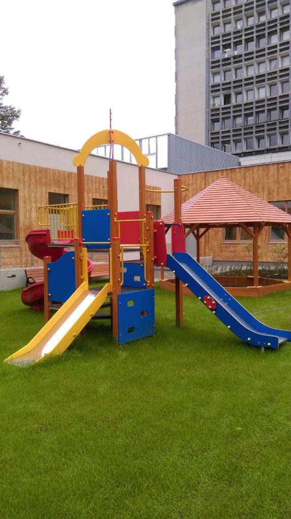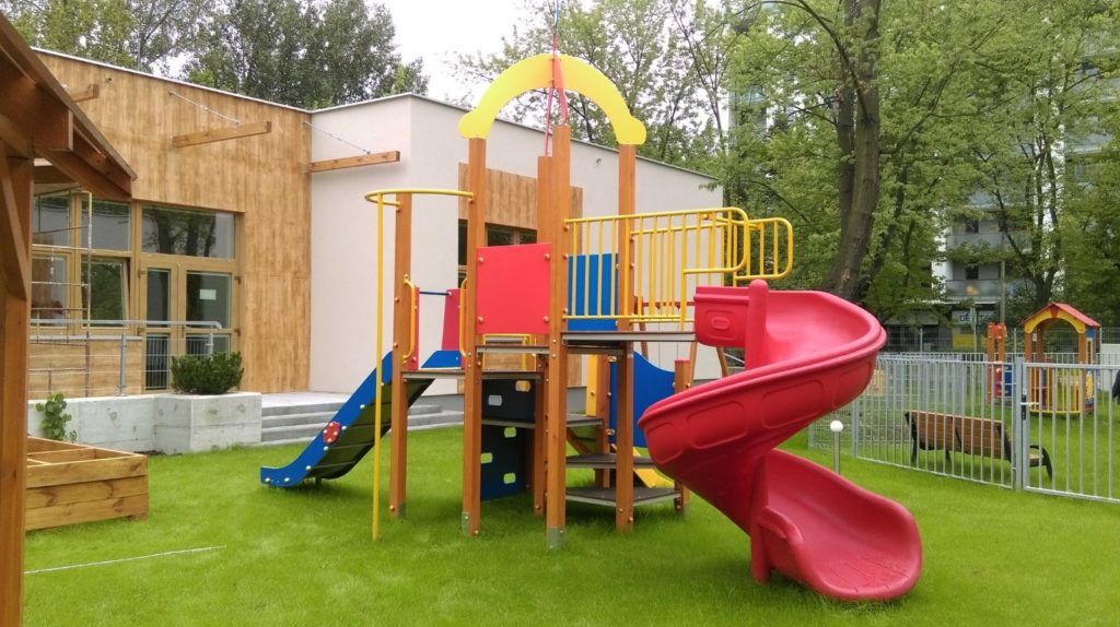 Najmłodsi mają do dyspozycji ciekawie wyposażony drewniany zestaw zabawowy z elementami ozdobnymi. Jest on w kształcie zamku z daszkami. To najczęściej wybierana forma takiego urządzenia. Podobno najbardziej pobudza wyobraźnię dzieci. Mogą one szaleć do woli, ponieważ zadbaliśmy o ich bezpieczeństwo. Plac zabaw zbudowaliśmy z elementów, które są nietoksyczne i nowoczesne. Zadbaliśmy o dokładny montaż i nawierzchnię bezpieczną. Teraz opiekunowie mogą się odprężyć i nie muszą co chwila nerwowo spoglądać na podopiecznych. Zapraszamy do obejrzenia galerii poniżej i podzielenia się z nami spostrzeżeniami.