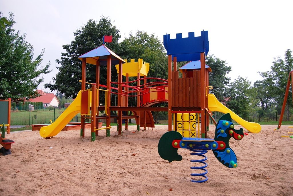 - obiekty budowlane małej architektury (urządzenia i konstrukcje zabawowe, tj.: piaskownice, huśtawki, bujaki, zjeżdżalnie, wieże, drabinki oraz ławki, kosze na śmieci i tablice informacyjne),